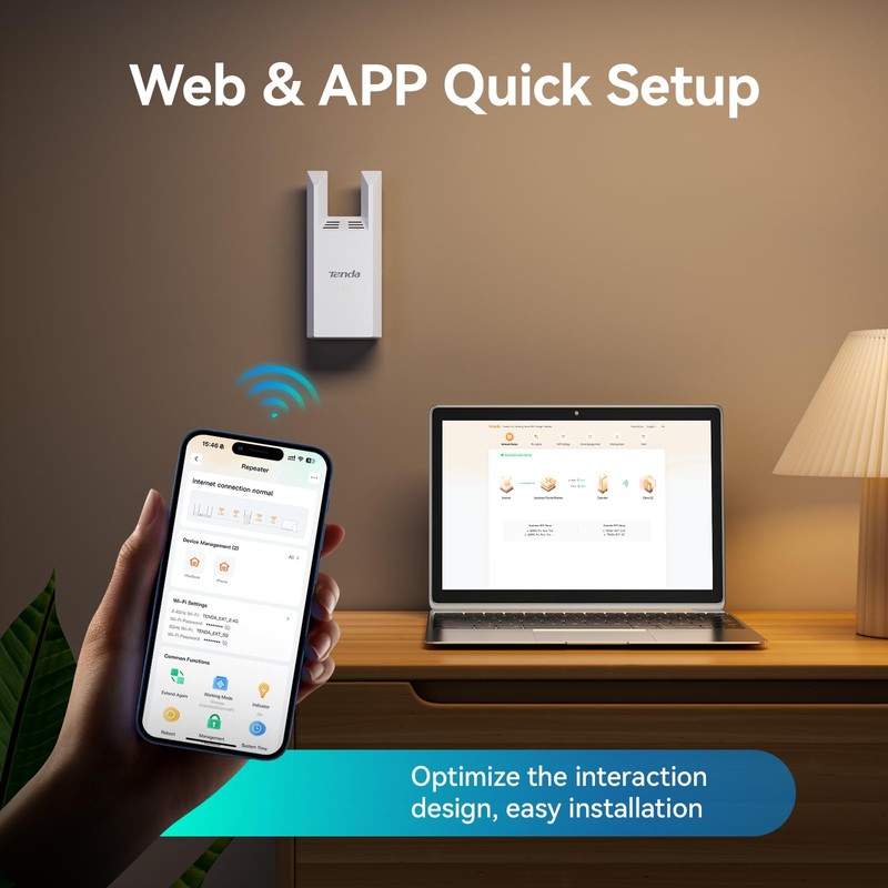 - App Management, Flexible Control - With the Tenda WiFi APP, you can remotely view and manage extender devices anytime and anywhere, making your smart life one step faster.