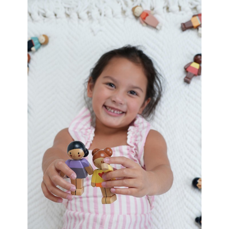- DIVERSE DOLLS - Meet our We Are Family dolls, dolls who love to play pretend and are all about inclusivity, diversity, and fun! Made from gorgeous, sustainably sourced rubberwood, these dolls come with articulated arms, so they can hug, wave, and strike poses in the most adorable ways. Their beautifully painted faces reflect different skin tones, and their bright, cheerful outfits make each doll as unique as your very own family! Dolls are sold separately.