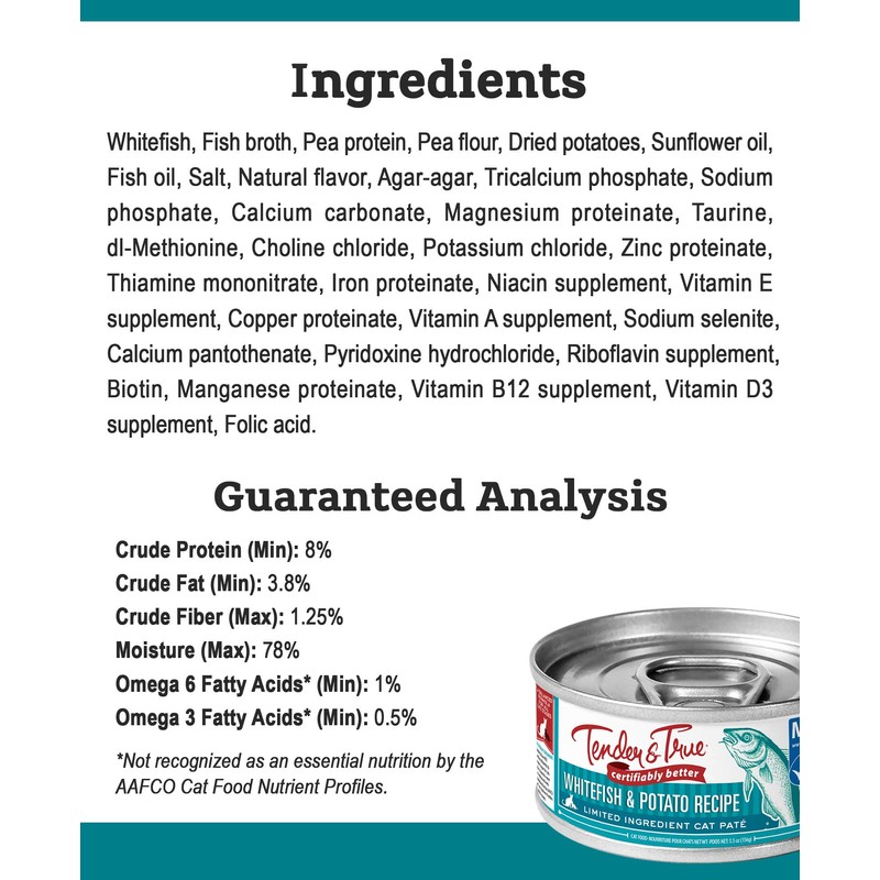 Tender & True Ocean Whitefish & Potato Recipe Canned Cat Food, 5.5 oz, Case of 24