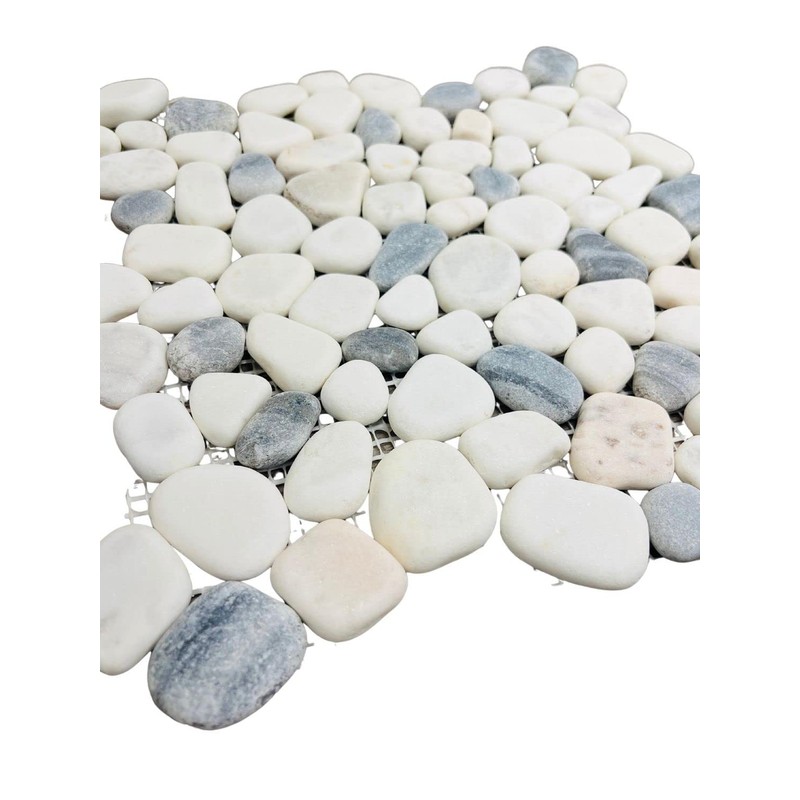 Tenedos Grey and Carrara Pebbles Marble Stone Mosaic Floor & Wall Tile for Bathroom Shower, Outdoor Wall (Box of 10 Sheets)