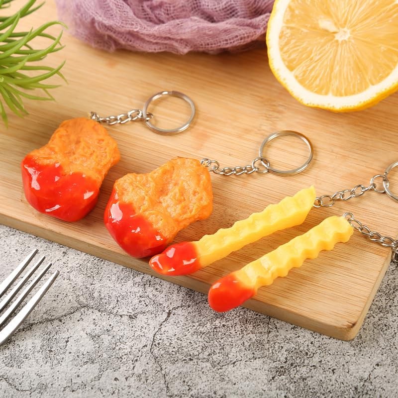 tenghong2021 Imitation Food Keychain Fried Chicken Leg Chicken Nuggets Wing Creative Pendant KeyRing Fun Cute for Handbag Purse Car Accessories -Chicken Nugget (Tomato Sauce)