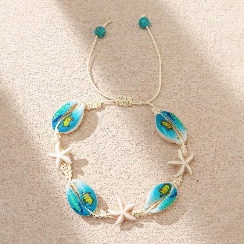 TengRiah Boho Sea Turtle Starfish Shell Beach Ankle Bracelet Adjustable Summer Ocean Pearl Heart Sunflower Rice Bead Bracelet Jewelry for Women-5