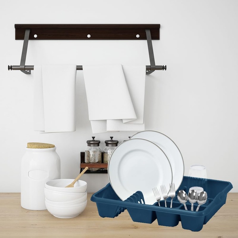 - π½οΈ ππππ πππππππ - Stylish Large Dish Drainer Made From a Strong, Durable Plastic, Holds Up To 12 Plates with 2 Handy Cutlery Drainer Compartments and Additional Drainer Space For Cups and Glasses. Cleverly Designed with Integral Handles. Ideal for Tidying Scourers, Sponges, Cutlery, Cups Etc