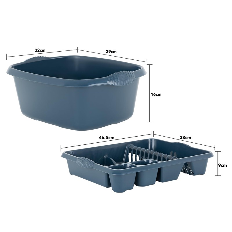 TENLITE SET OF 2 Large Rectangular Washing Up Bowl with large Dish Drainer For Kitchen Utensils - (Midnight Navy)