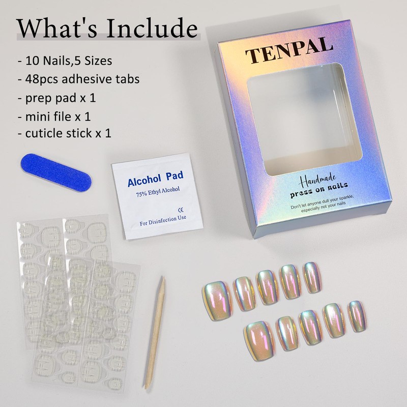 - [Why choose TENPAL?]: Our brand uses imported nail gel to make High-Grade handmade press on nails. it is different from the ordinary and simple styles on the market. TENPAL press on nails, craftsmanship and nails details are unique.Reusable Fake Nails – Switch 100+ Designs in 2 Mins! Salon-Perfect Gel Look Without UV Light, Drying Time, or Chipping. Perfect for Weddings, Parties & Daily Glam!"