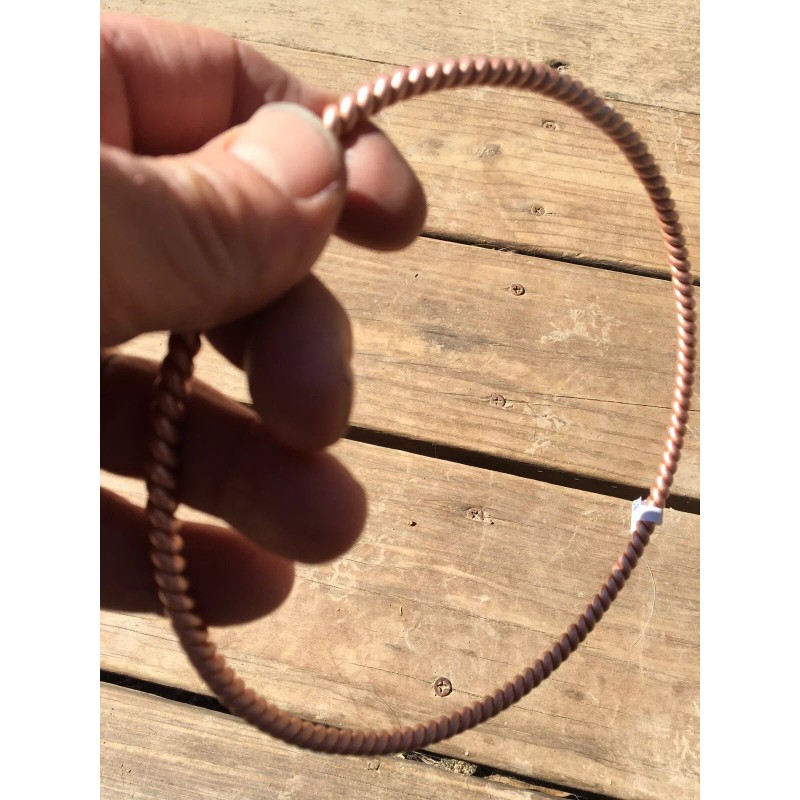 Hand crafted using 8 Gage copper wire with silver bearing solder. Constructed with a twisted wire length of 19.650 inches for a finished diameter of 6.255 inches from center to center of twisted wire ring.