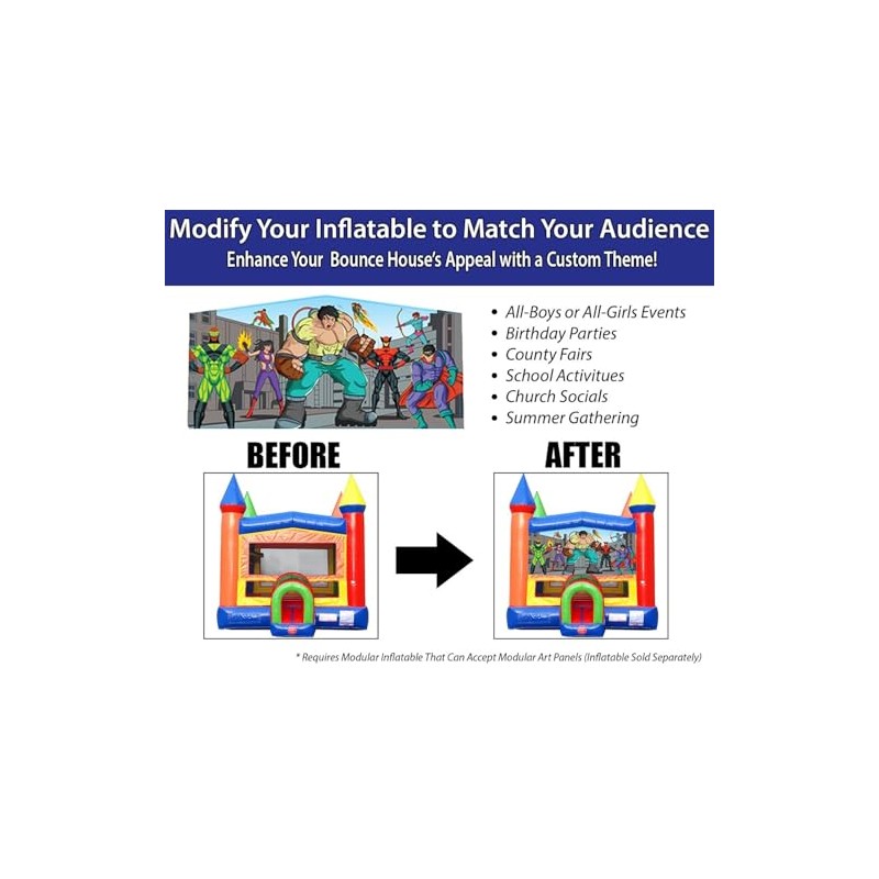 - CUSTOMIZABLE: Interchangeable panels attach using hook and loop tape and offers you a variety of options to customize your inflatable for any event