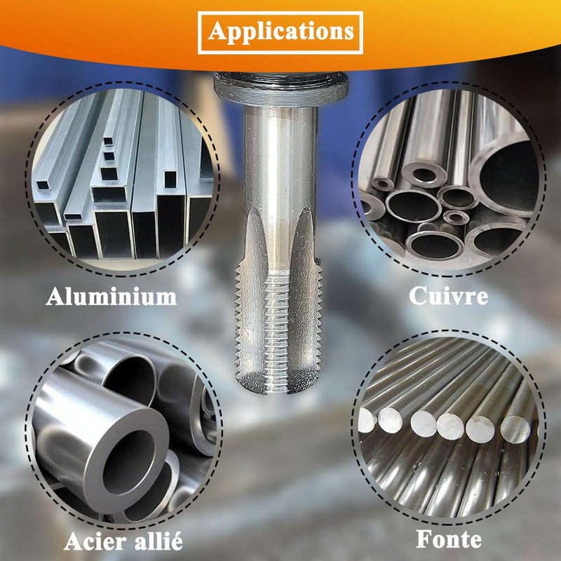 • Easy to Use The right hand thread die is easy to use, just align the fixing screw with the die positioning groove in the middle of the die key, insert the screw into the groove and tighten it, every 1/4~1/2 turns the die should be reversed to facilitate chip evacuation.