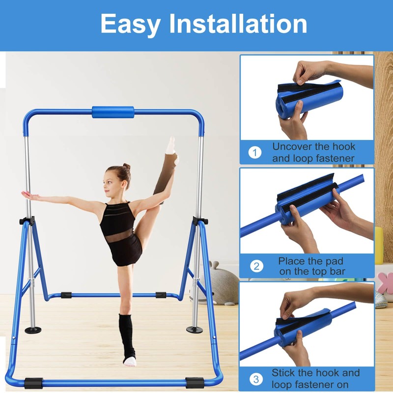 Easy to Use: The gymnastics bar pad is secured to the top bar via hook and loop fastener, allowing your child to use it in seconds.