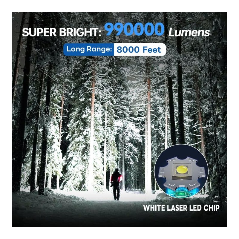 TEQDOT Flashlights High Lumens 990000 LED Rechargeable Tactical Flashlight Zoomable 3 Modes Fast Charging IPX6 Waterproof Super Bright Handheld Flashlights for Camping Hiking Outdoor and Gift
