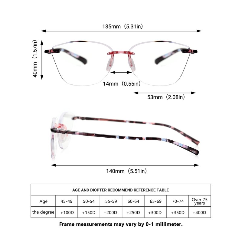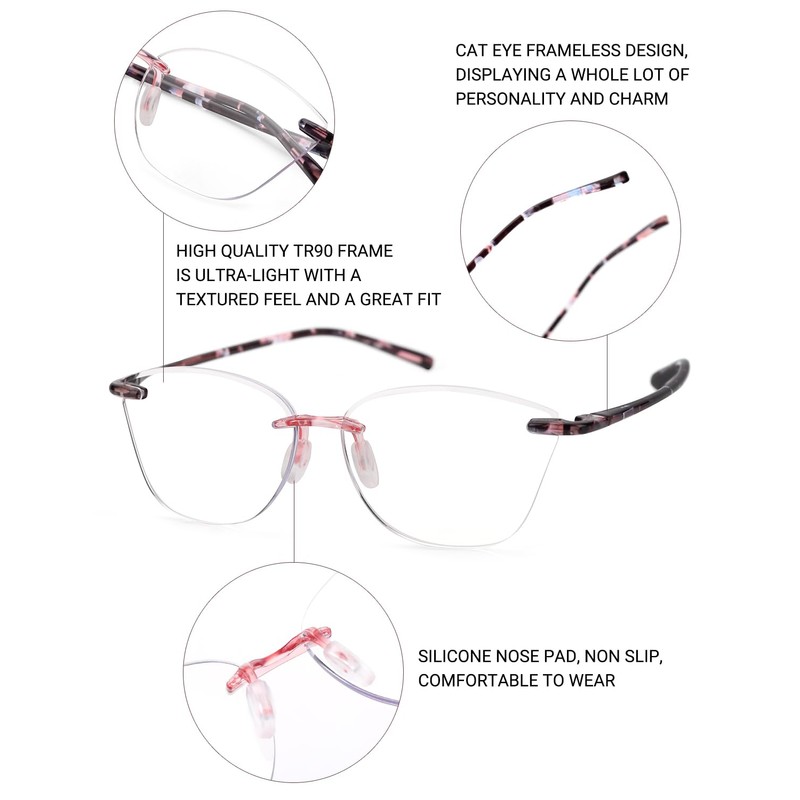 - ☀Style and comfort - This pair of reading glasses features a frameless cat-eye design that perfectly combines style and comfort. So for those who seek practicality and good looks, this pair is the ideal choice.
