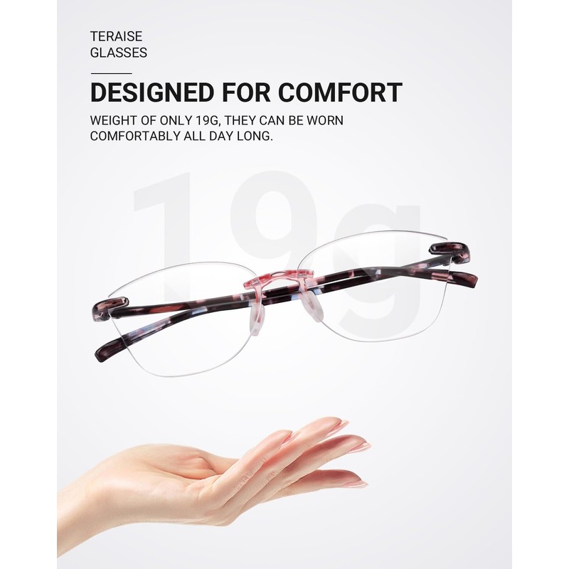 - These ultra light rimless glasses are more suitable to be worn for long hours. They can effectively reduce pressure on and around the nose and the temple area of the head, allowing you to enjoy a comfortable reading experience.