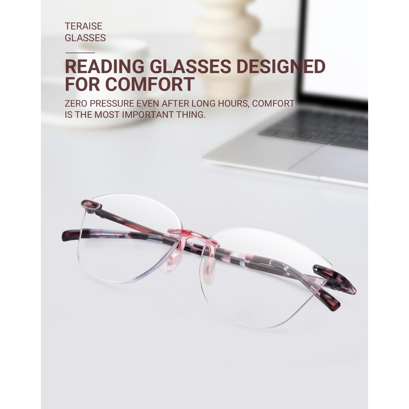 TERAISE Rimless reading glasses for women Comfortable Lightweight Frameless Reader Blue Light Blocking Computer Eyeglasses(1.5X)