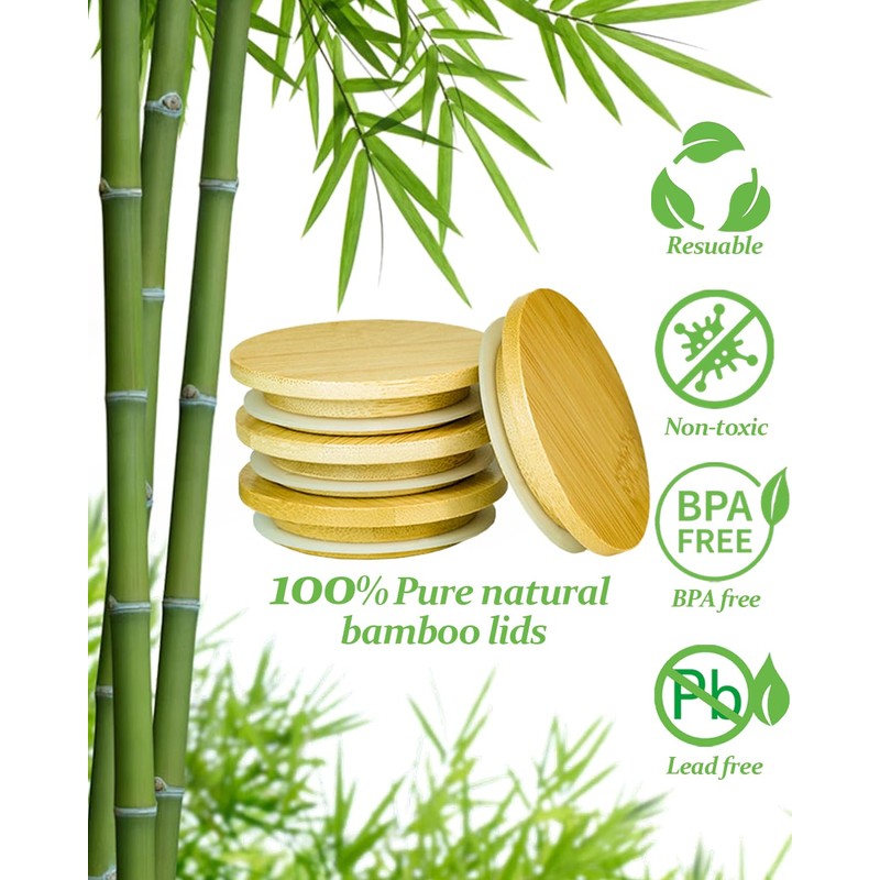 TERESRY TERESRY 8 Pack Oui Yogurt Jar Lids with 8 Labels, Food-Grade Bamboo Lids for 5Oz Oui Yogurt Jars, Reusable Wooden Canning Covers Perfect for Oui Yogurt Bottle with Airtight Seal Ring(Jar not Included)