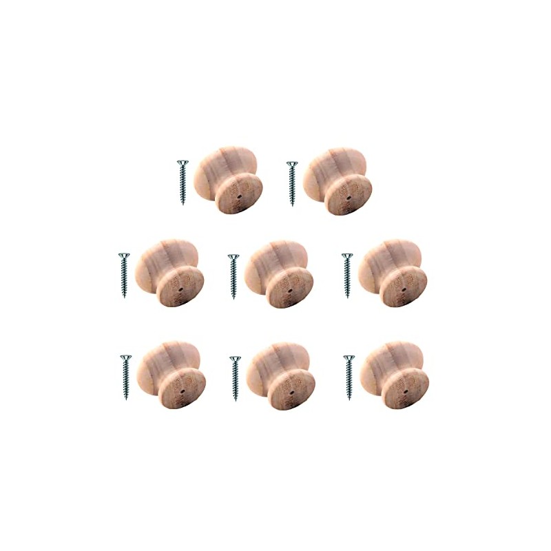 TERF® Traditional Unlacquered Pine Wooden Cupboard Cabinet Door Knob 35mm Drilled Wood Knob With Fixing For Chest Drawer Cupboard Kitchen Wardrobe Door Pull Handle Knobs - Pack of 8