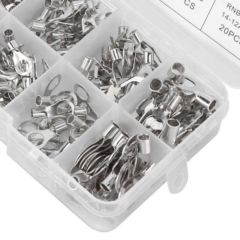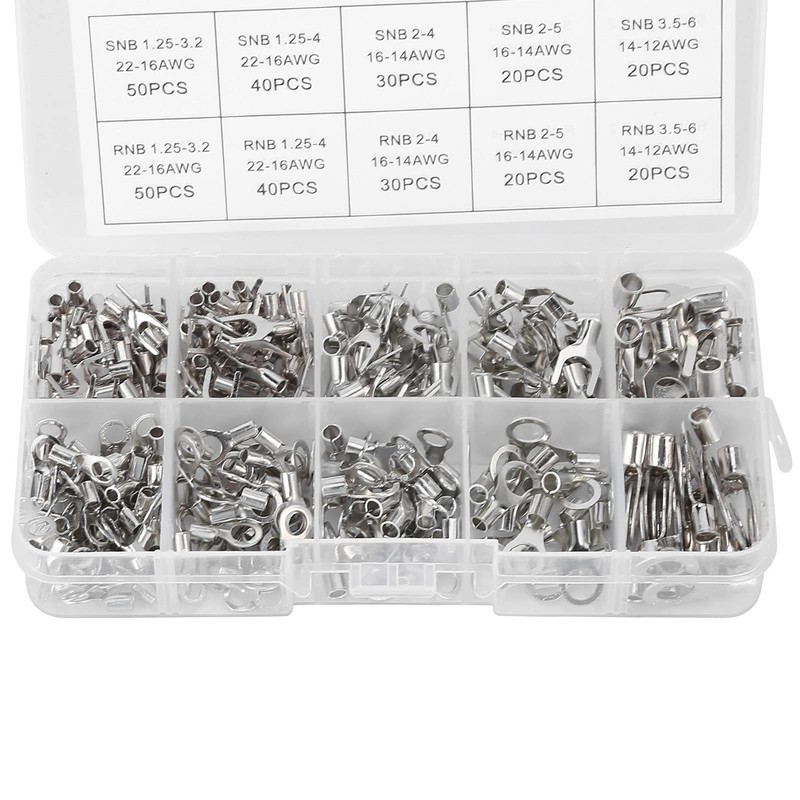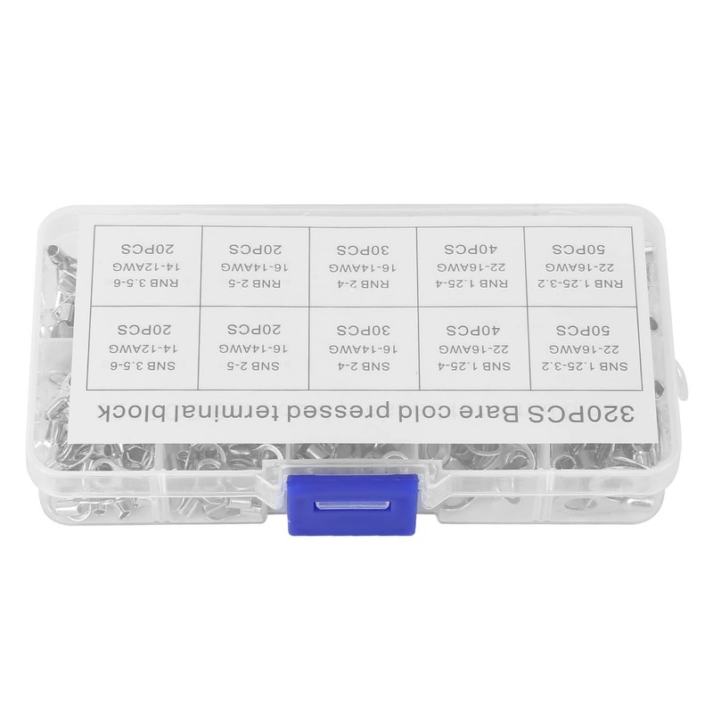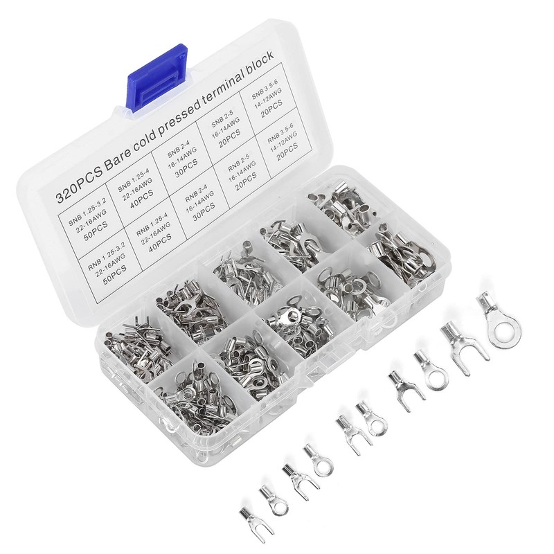 - 10 tipos de terminales de engarce tipo horquilla sin aislamiento, un total de 320, para satisfacer la mayoría de sus necesidades.