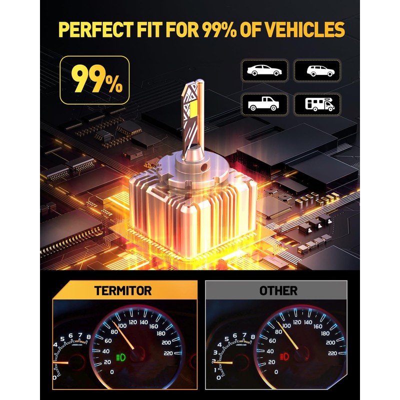 • 【Fits Most Vehicles - 99% Compatibility】The built-in smart technology works with nearly all cars (99%+) without flickering or error messages. Remember: Always check your car's manual for the right bulb size - online guides can be wrong. Need help? Contact Termitor.