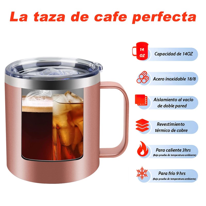 - ☕【Termos para cafe con aislamiento al vacío】: Nuestro taza termica con doble aislamiento de 14 oz(400ml) está hecho de acero inoxidable 18/8 de grado alimenticio por dentro y por fuera, sin BPA, sin plomo y resistente a la oxidación. La tecnología de vacío de doble pared mantiene tus bebidas calientes durante más de 3 horas y frías durante más de 9 horas. El diseño aislado de acero inoxidable evita que la taza esté demasiado caliente al tacto,o se forma condensación por el frío.