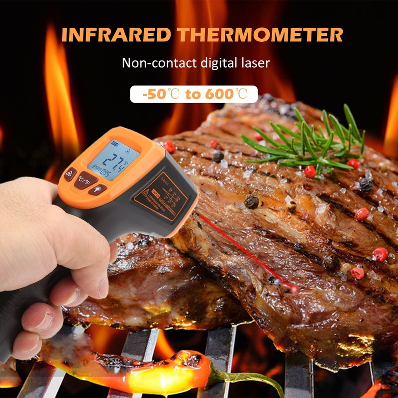 Termómetro Infrarrojo sin , Termómetro Infrarrojo Digital de Temperatura de Alta Temperatura, -50~600 ° C / -58~1122 ° F, Termómetro Industrial Pistola(naranja)