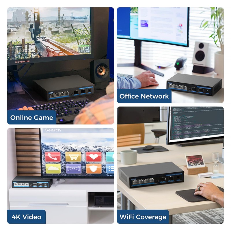 - This switch is versatile and fully compatible, making it ideal for 2.5G NAS, 4K video playback, gaming PCs, 2.5G Servers, 2.5G WiFi6 APs, 2.5G PCIe Adapters, and more. It serves a wide range of venues, including shopping malls, communities, schools, hospitals, parks, hotels, and small to medium-sized enterprises.