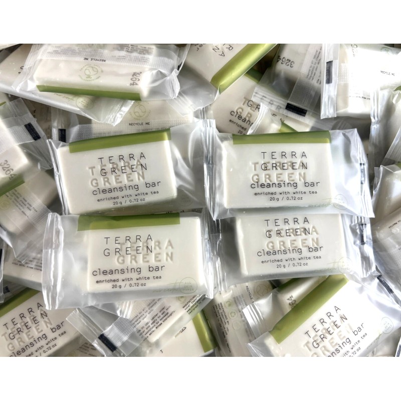 Terra Green Lot of 100 Terra Green White Tea Soap Cleansing Bars 0.72 oz Hotel Travel Size