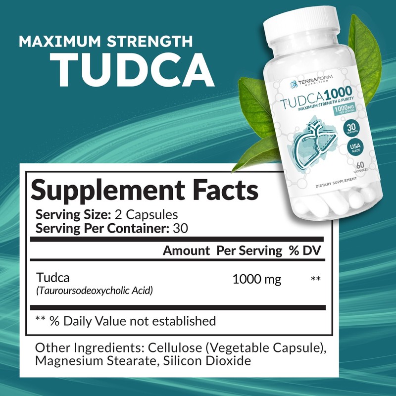 Terraform Nutrition Max Strength Pure Tudca | 1000mg Per Serving | 60 Capsules