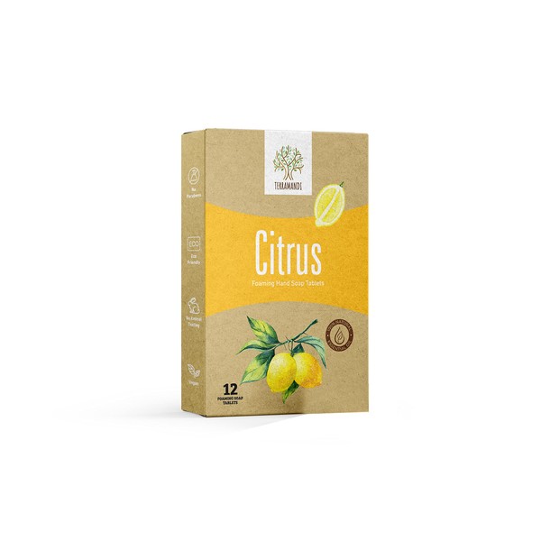 Terramandi Foaming Hand Soap Tablets 12 count Refill - Makes 96 fl oz of foaming hand soap (12x 8 fl oz bottles of soap) (Citrus)