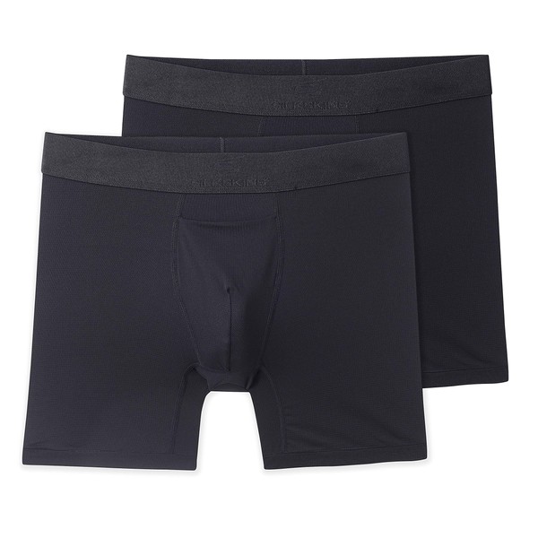 Terramar Men's Silkskins 6" Boxer Briefs, Black Air Cool, 2 Pack, Large