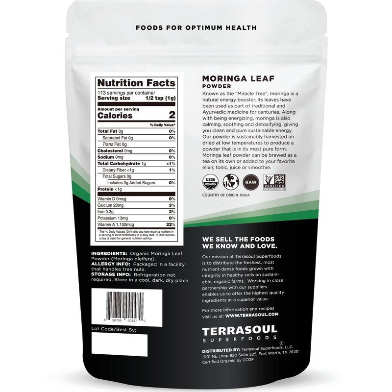 - Terrasoul Superfoods Organic Moringa Leaf Powder, 11 Ounces