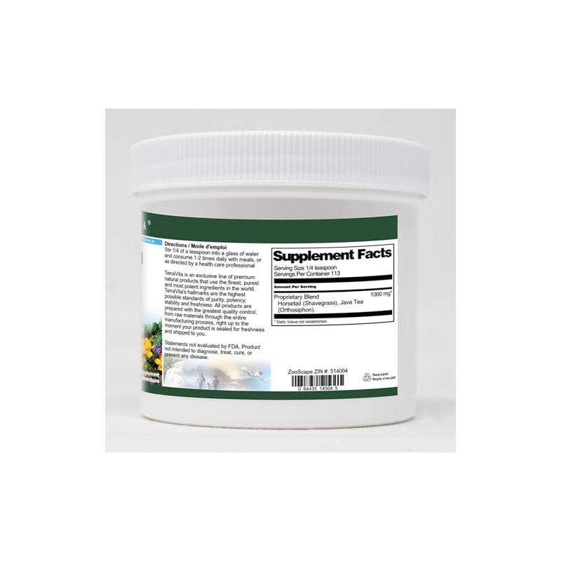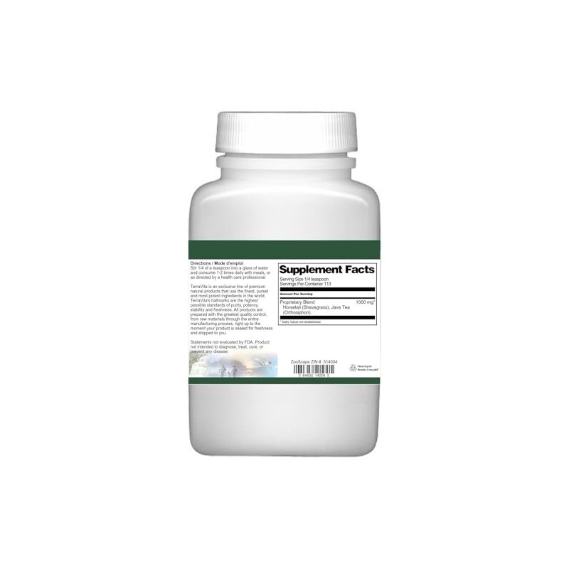 Java Tea and Horsetail Formula Powder (4 oz, ZIN: 514004)Packaged in the United States in a GMP certified facility (Good Manufacturing Practice).No fillers.Manufacturer: TerraVitaSize: 4 ozConvenient Powder format.Ingredients: Horsetail, Java Tea