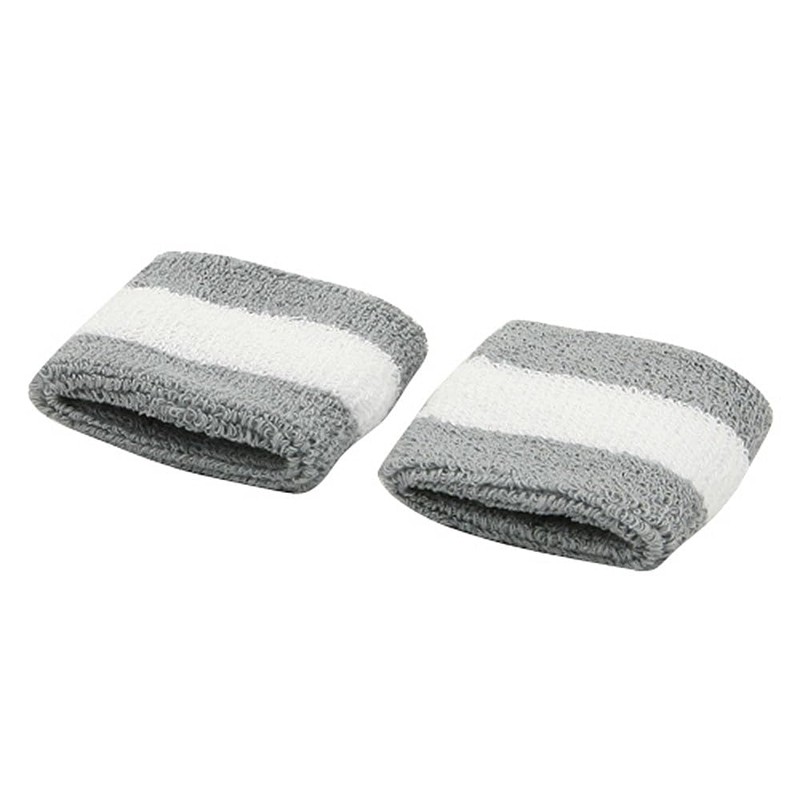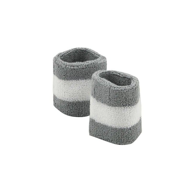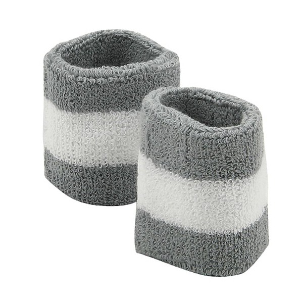 Terry Stripe Wristband Pair (Grey White, One Size)