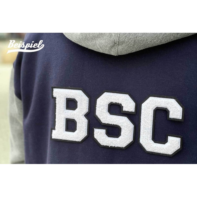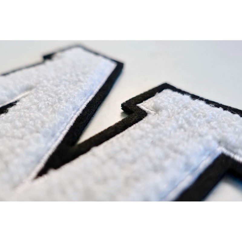 - A letter (varsity letter) made of soft terry cloth for college jacket, sweat jacket, parka or utility jacket. Two tone in white, black. Simply sew on and you're done!