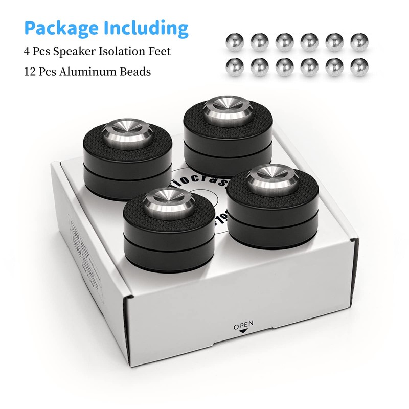 Tertullus 4 Sets Speaker Isolation Turntable Feet, Stainless Steels+Aluminum Hifi Shock Absorb Subwoofer Speaker Stand For Hifi Devices Amplifier Turntable Dac Recorder Cd (A00-Black)