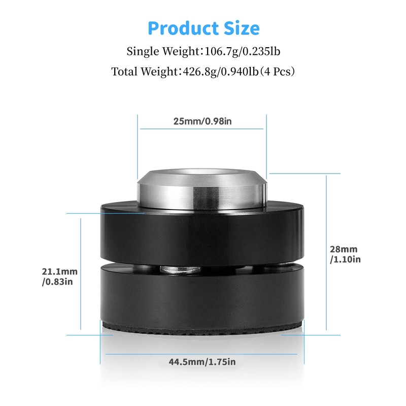 - ➤ Suitable For Speakers, Amplifiers, Instruments, Devices, Record Players, Cd-Dvd Players, Dac Etc. Prevent The Transmission Of Unwanted Resonance Frequencies From The Respective Cabinet To The Floor.