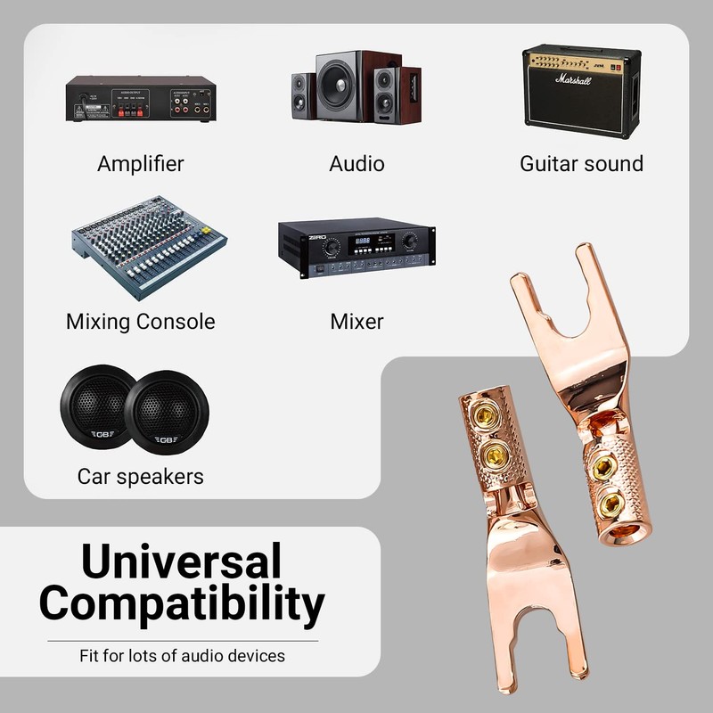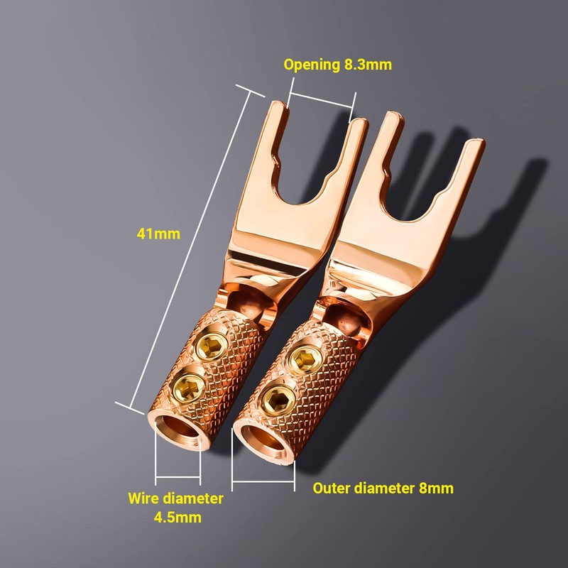 Tertullus 8 Pcs HiFi Speaker Spade Connectors Pure Copper Audio Terminal Connectors U Fork Y Plugs For Wire size up to 4.5mm