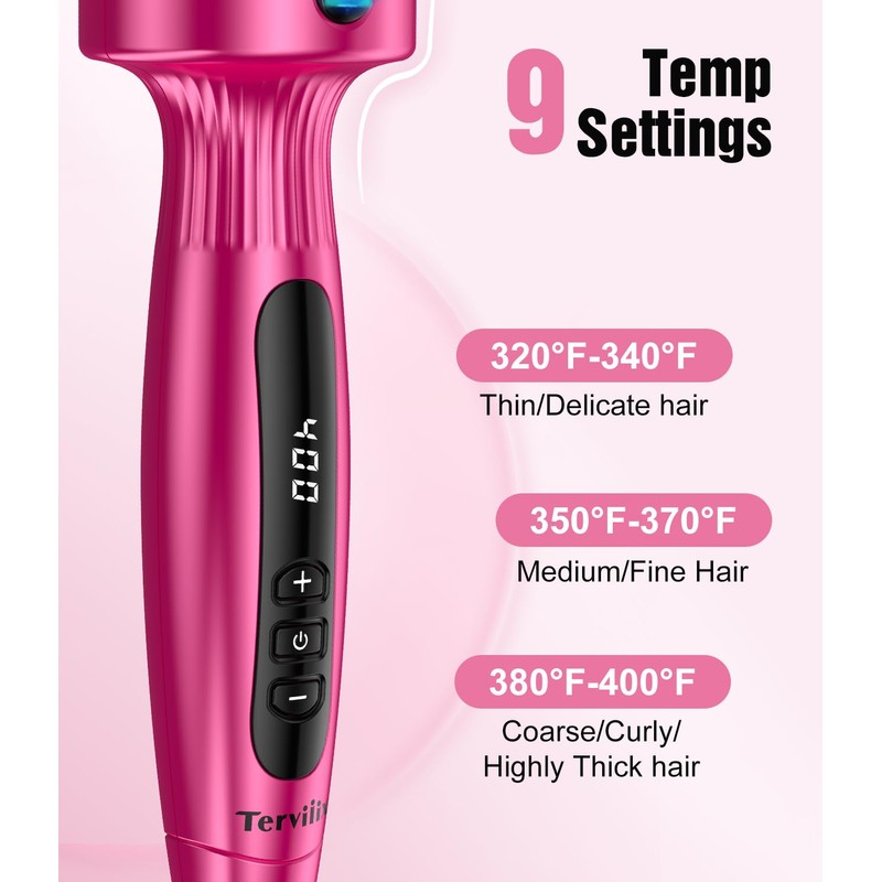 - 9 LED Temp Settings for All Hair: The Terviiix Ionic Hot Round Brush offers 9 temp settings from 320°F - 400°F in 10°F increments. Whether your hair's thin, normal, or thick, find the right heat. This not only helps you achieve your desired style easily but also minimizes heat damage, ensuring your hair stays healthy while looking its best