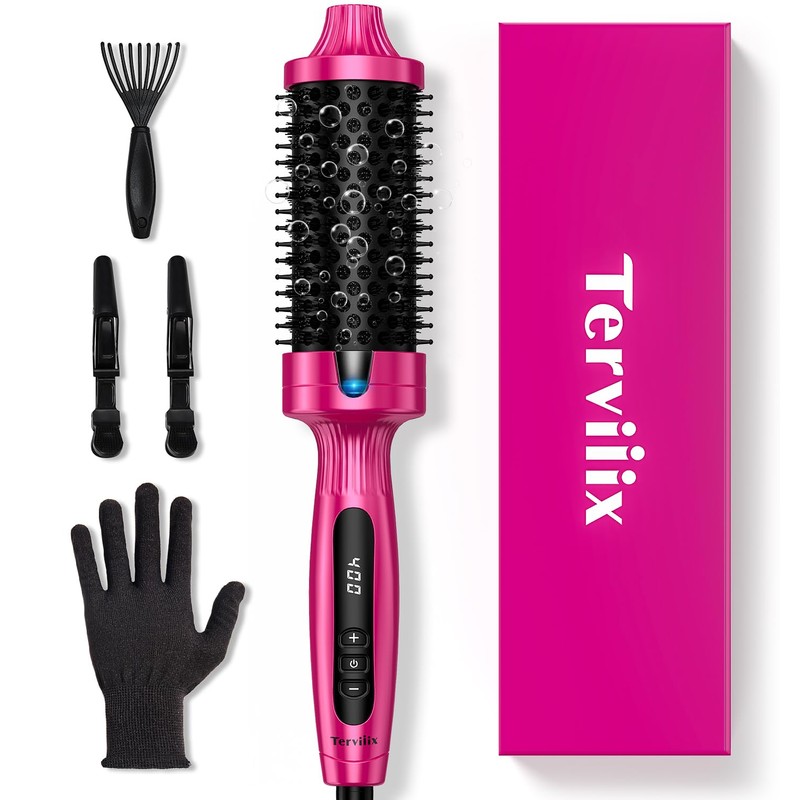 - All-in-One Curl & Style: The Terviiix Ionic Thermal Brush has extra-long heated bristles for a firm hold, making wrapping and styling easy. The tourmaline ceramic barrel ensures even heat, making it a pro at creating big, bouncy curls, sleek lightweight styles, and a trendy fringe. Get salon-like volume and smoothness at home
