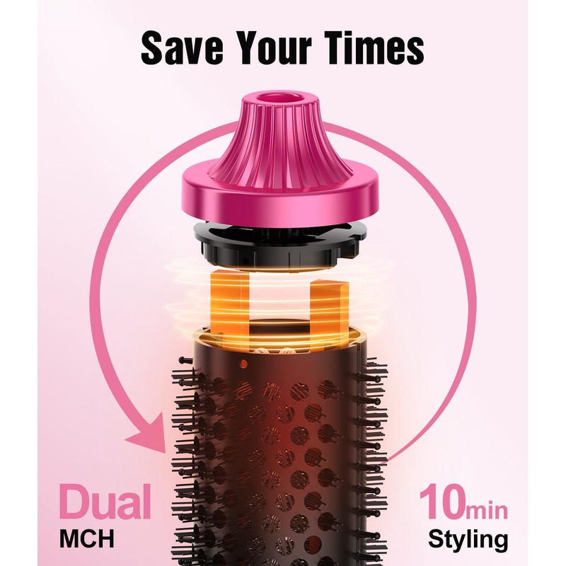 - Dual MCH Tech for 50% Faster Styling: Terviiix Ionic Heated Round Brush has dual MCH heaters heat up 50% faster than PTC ones, stay evenly hot, and are safer and longer-lasting. This all - in - one tool replaces extra combs and clips, simplifying your hair routine