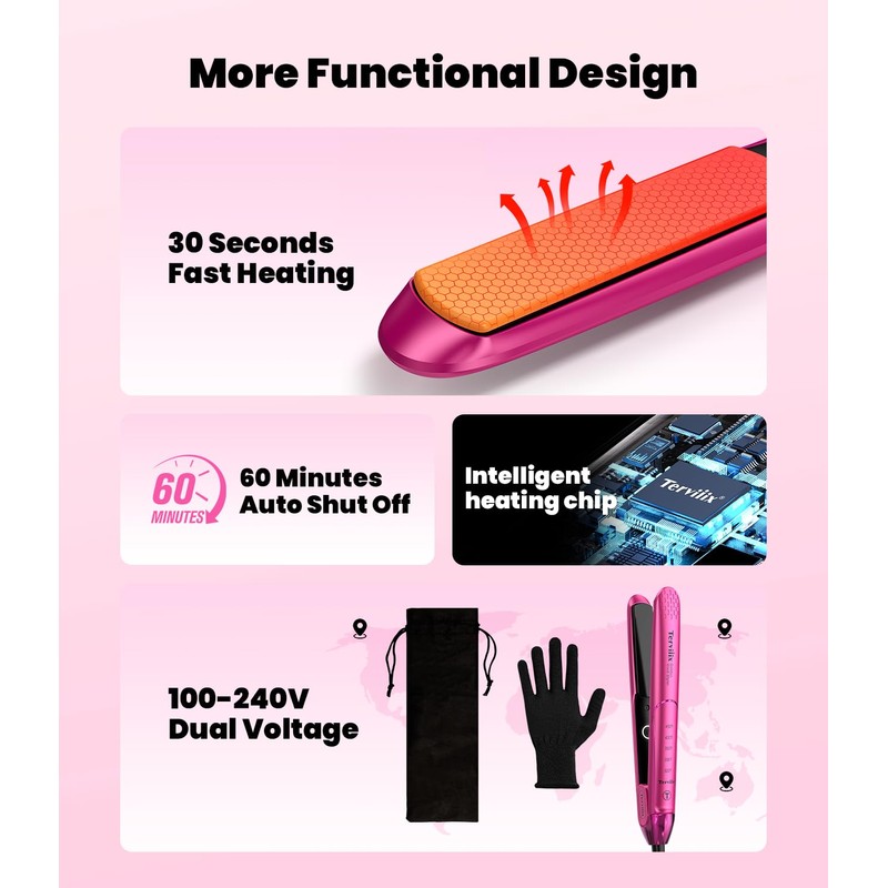 - Non-Snagging Ultra Smooth Gliding: Back to the essence of a flat iron, smooth gliding is a basic but important feature. It's the first impression for us to feel and decide if an iron is qualified for our compliment. Terviiix advanced floating arc plates can assure you that as the arc design avoid hair getting stuck in gap between plate and body. Curved edge 3D floating plates continuously moves while straightening & curling, ensures a comfortable and smooth gliding