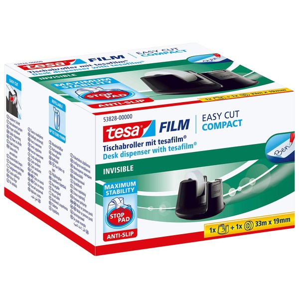 tesa Easy Cut Deskdispenser Compact ZWART inlc 1 rol tesafilm Invisible 33M x 19MM