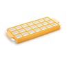 - Place a rectangular piece of dough on the mould, spread the filling on it, place another rectangular piece of dough over it and make ravioli by rolling several times over the mould with the dough roller.