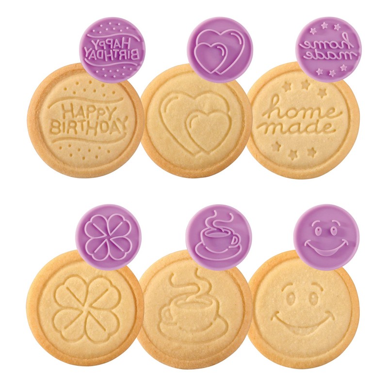 • The set consists of the stamp, 6 original easily interchangeable motifs and round cookie cutter