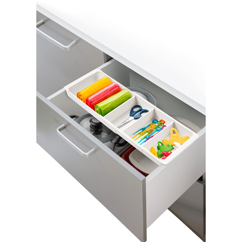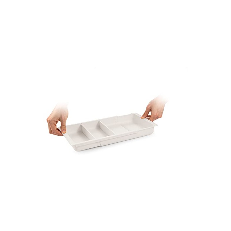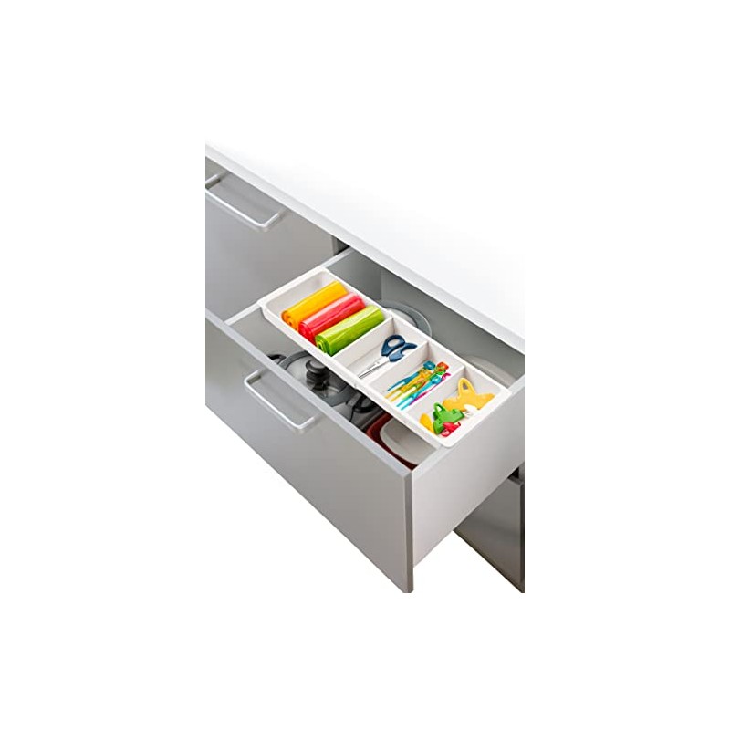 - The width can be adjusted from 33 to 55.5 cm to fit in all standard drawers