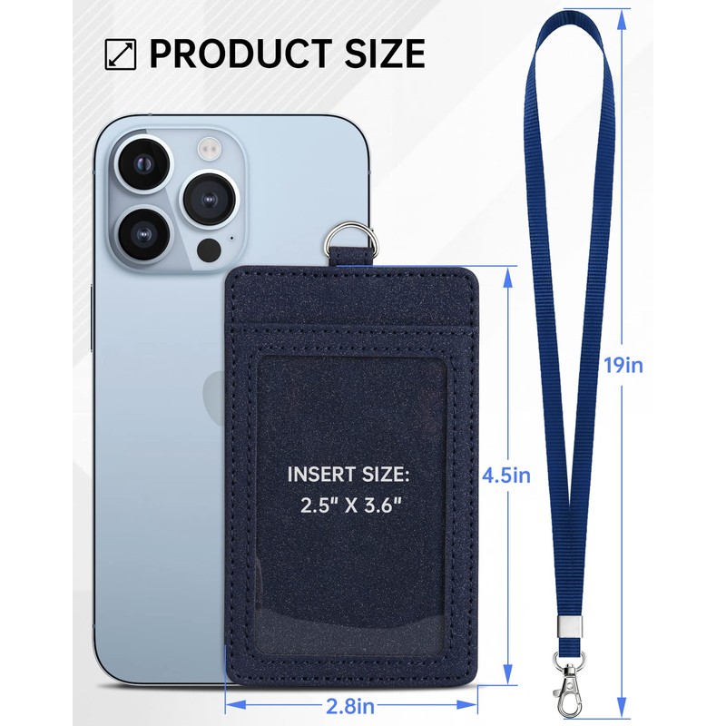 - Product Size: The id card holder size is 2.83"x4.53" (72x115mm) and the window size is 1.73"x2.99" (44x76mm), the lanyard dimension: 16.93"x0.39" (430x10mm) approximately.