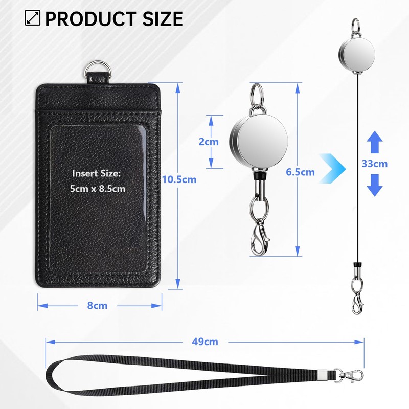 - 【Perfect Fit】Badge holder measures 7 x 11.5 cm. Clear window: 5.4 x 8 cm. The retractable lanyard extends to a length of up to 33 cm for flexible handling.