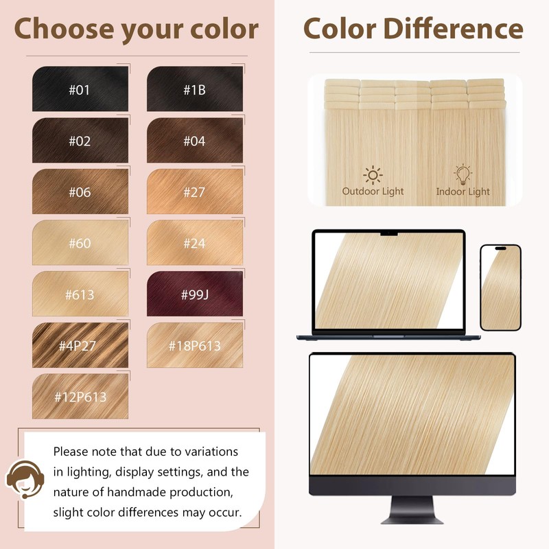 • Invisible and safe: Equipped with a nylon thread for attaching to the head, the TESS extensions with tape allow you to pull surrounding hair strands over the wire, so that the extensions remain completely invisible and are seamlessly integrated into your natural hair.