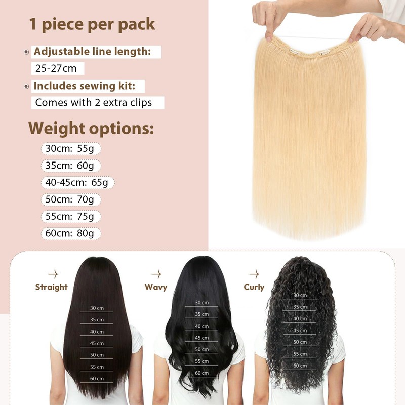 • Easy to use: Thanks to the easy application with elastic bands, the hair extensions with elastic band eliminate tape or clips and provide a quick solution to add more volume with an easily adjustable wire for a perfect fit.