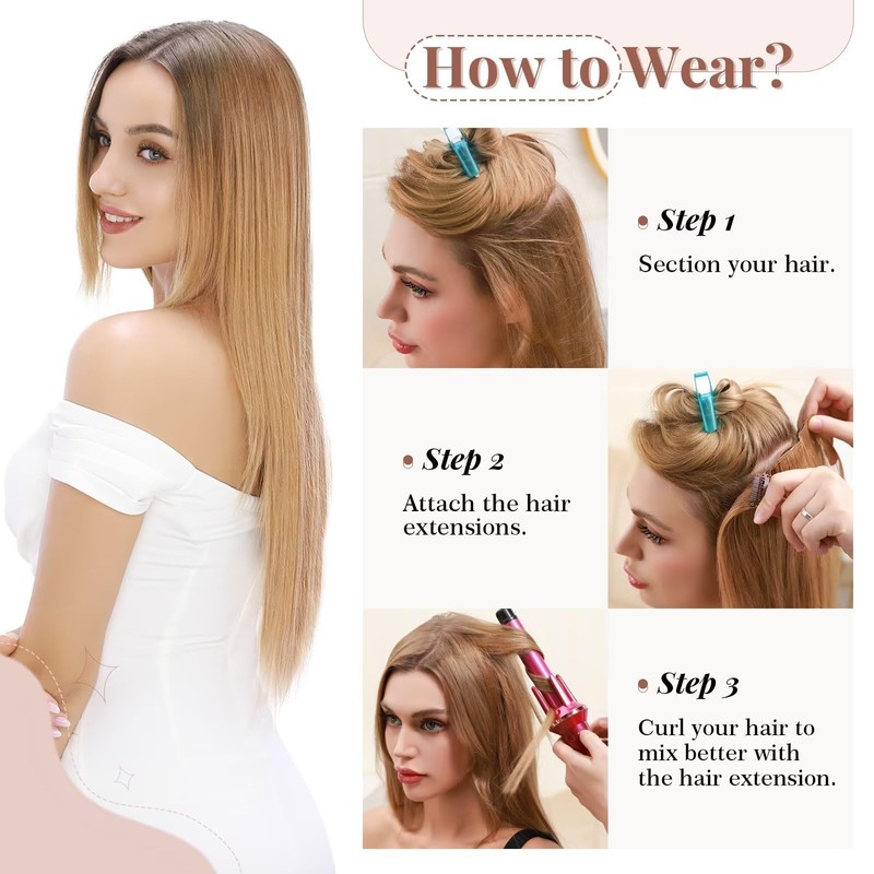 - Quick to put in and take out: Easier and faster method to extend your hair. Easy to use and reuse thanks to the clip technology. Clean and quick to insert without heating