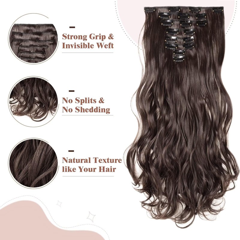 Tess Clip-In Extensions, Like Real Hairpieces, 8 Wefts, 18 Clips, Wavy Hairpieces