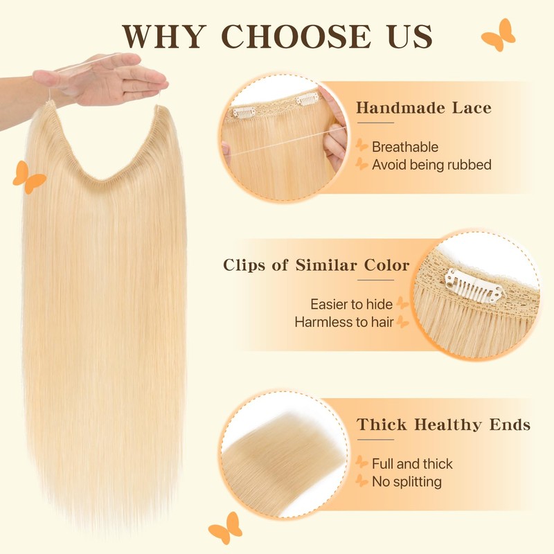 - 【Invisible Wire】No sewing, no glue, no tape, Easy to attach without causing damage to your own hair. An invisible band allows the hair extension to lie smooth and flat on the head, making it comfortable and secure. You can adjust the size by tightening or loosening the wire. Get beauty and confidence in seconds, instant new look and no one will find your secret;
